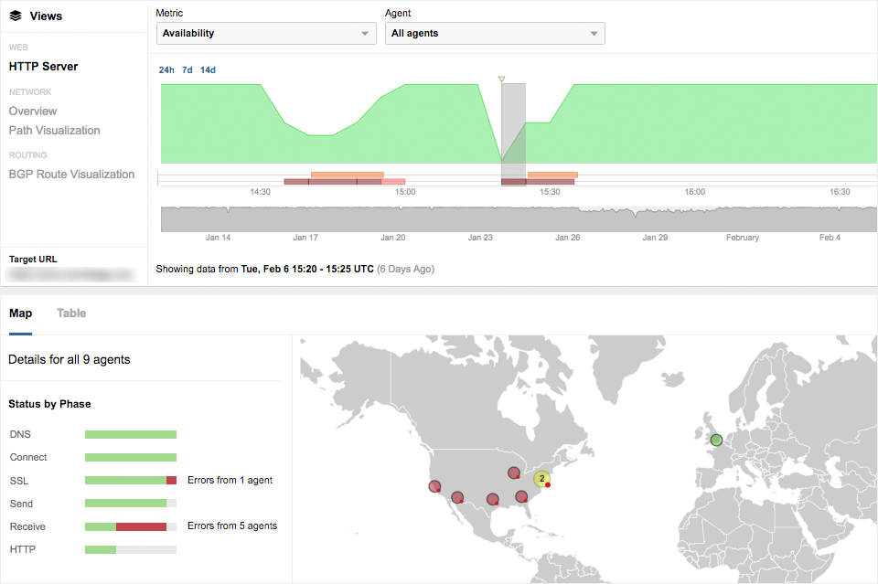 Typically, network monitoring data collection focuses on fairly siloed domains, such as device status and per-link traffic volume and composition. These data silos make it difficult to derive helpful insights into anything but pure network problems. Furthermore, most passive network monitoring data, like flow or packet capture, is only available from network infrastructure you own and operate. When you’re dealing with either Internet-facing digital business websites or Internet-dependent cloud app usage, you simply can’t get that data — since your ISP, CDN, DNS and SaaS providers won’t let you collect data from their infrastructure. Network Intelligence — a modern update to traditional network monitoring, lets you see both what the user experience is for a site and why. Network Intelligence can do this because it collects multiple types of Internet-aware network performance monitoring data with application and service performance data from many vantage points, and correlates them in an algorithmic fashion.