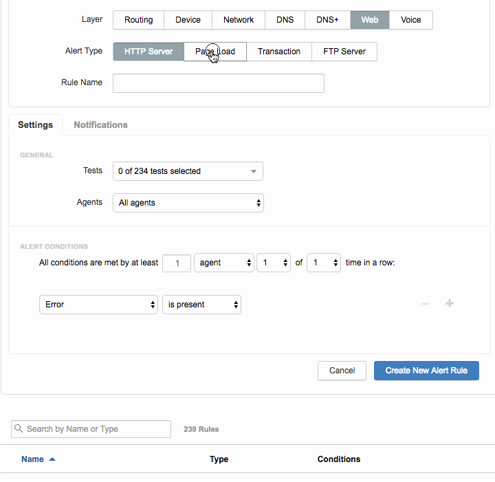 The entire ThousandEyes alerting system revolves around the notion of an alert rule. You can think of a rule as a simple, stand-alone program. It expects a certain kind of input (monitoring information), runs some basic logic (alert conditions) and produces an expected output (alerting situation detected or not.) [Figure 1]