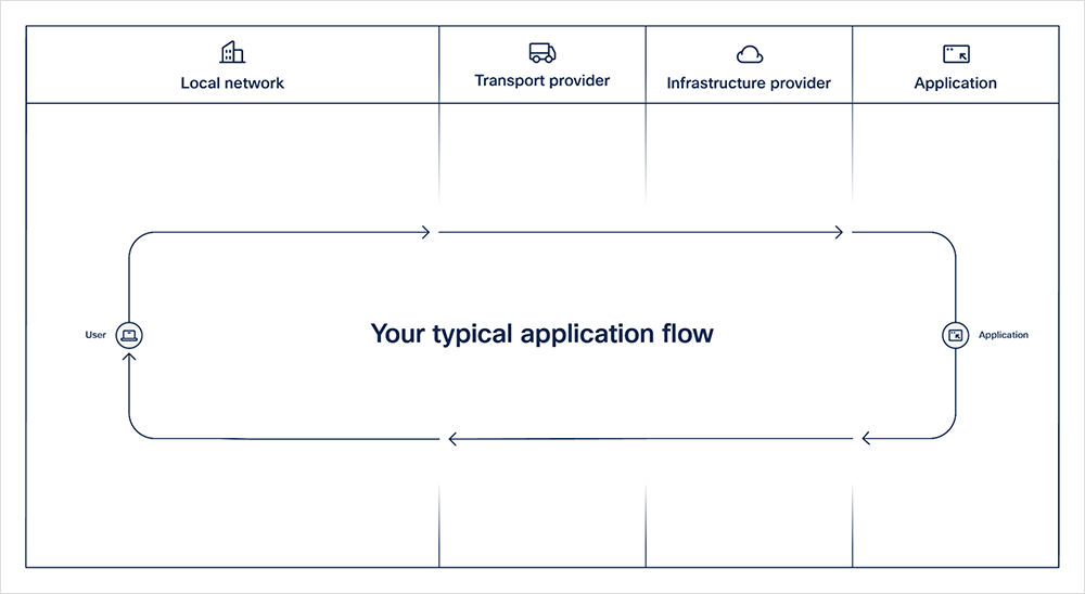 When assessing the performance, reliability, or productivity of an ecosystem, it can be unwieldy without first stepping back and breaking the whole into the various components, each of which will be gauged independently. Let’s take a typical application flow—this flow shown in Figure 1, when drawn, conveys the idea of a circle or a loop, and it truly is. Applications require two-way communication and, in today’s world, will almost certainly cross multiple physical and logical domains.
