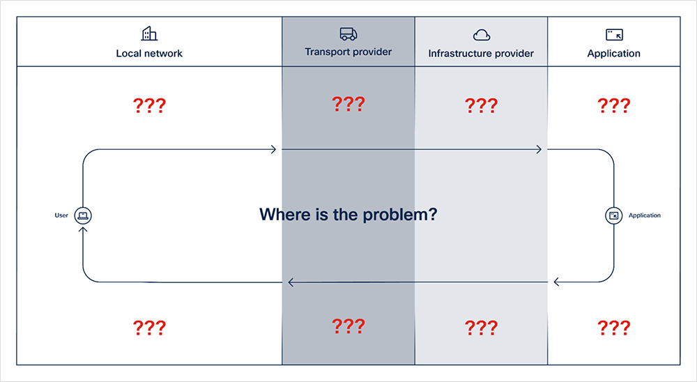 Any hiccup in any one of these systems can result in a poor user experience. A half-second of extra processing time, 1% packet loss at some transit node in the path, or many other seemingly miniscule measurements can be catastrophic. This presents a challenge for IT teams, who are being asked to monitor a collection of independent yet interconnected things.