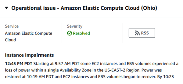 On July 28, 2022, just before 17:00 UTC, Amazon Web Services (AWS) experienced a power failure that disrupted services located within Availability Zone 1 (AZ1) in the US-EAST-2 Region. The outage affected connectivity to and from the region and brought down Amazon’s EC2 instances, which impacted applications such as Webex, Okta, Splunk, BambooHR, and others. While AWS reported the power outage lasted only approximately 20 minutes, some of its customers’ services and applications took far longer to recover—in some cases, up to three hours.