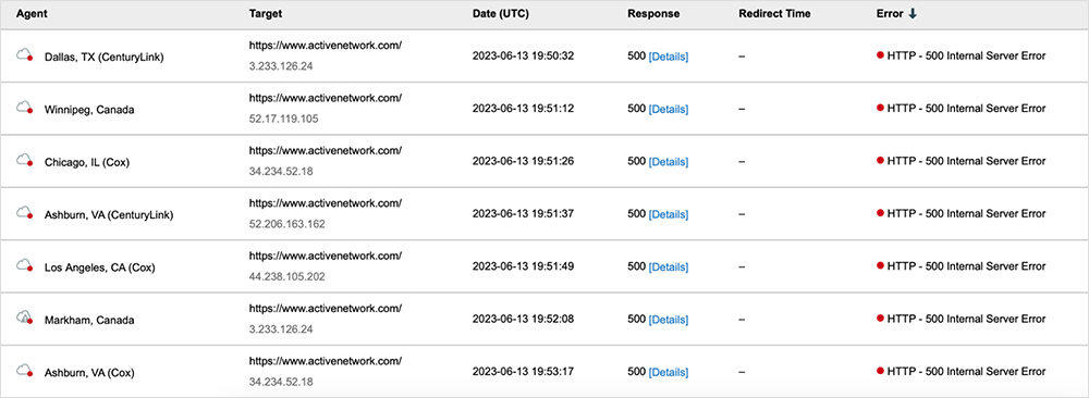 On June 13, 2023, Amazon Web Services (AWS) experienced an incident that impacted a number of services in the US-EAST-1 region. The incident, which lasted more than 2 hours, was first detected around 18:50 UTC, when ThousandEyes observed an increase in latency, server timeouts, and HTTP server errors impacting the availability of applications hosted within AWS. The issue was mostly resolved by 20:40 UTC, with availability returning to normal levels for a majority of impacted AWS services, as well as subsequently affected applications.