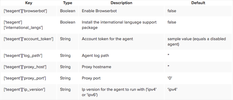 Below is a list with the default attributes for the teagent cookbook. As a quick but important note to the attributes, you should always set the value for the ['teagent']['account_token'] key to your account token.