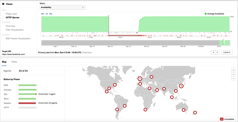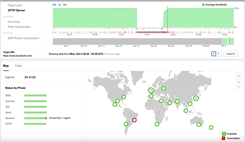 Facebook Engineering has published a blog sharing some details about the events that unfolded, which you can read here. In this post, we’ll attempt to answer some of the most common questions we’re getting by unpacking the outage from multiple angles. Later today, we’ll be publishing an episode of the Internet Report where we’ll cover not only what happened and its impact, but also the precipitating event, takeaways, and lessons to be learned.