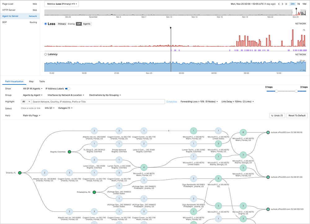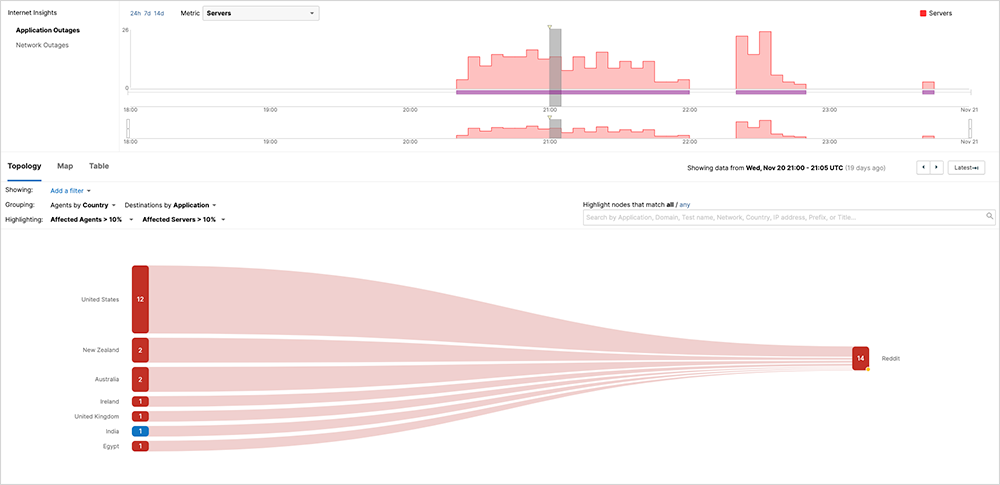 Explore the DigitalOcean network issues further in the ThousandEyes platform (no login required).