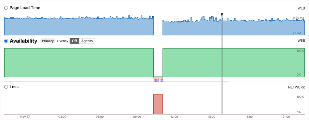 Notably, the path to the edge servers did not show any problematic network conditions that could have been causing these timeouts, like increased packet loss at the edge. The “healthy” network conditions, when compared with the errors experienced by users, reveal that the most likely source of this disruption was related to some sort of backend service issue.