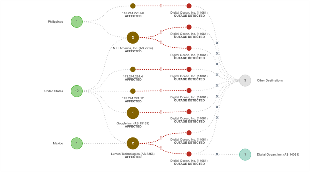 DigitalOcean later confirmed that impacted customers would have experienced “connectivity issues, latency, and timeout errors,” which aligns with ThousandEyes' observations.