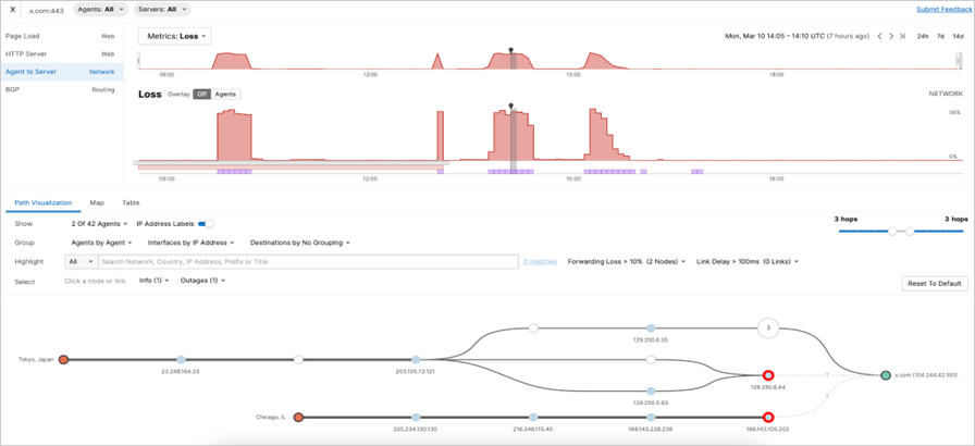 Explore the X outage further on the ThousandEyes platform (no login required).