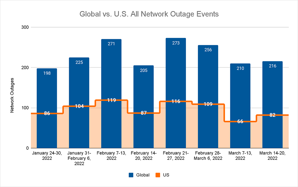 Typically in our outage statistics, we’re used to seeing a steady rise in the number of overall outages from January through March; and 2022 appears to be following a similar pattern, albeit with a lower number of outages overall. I say “appears to be” because there are a couple of deviations from the standard pattern.