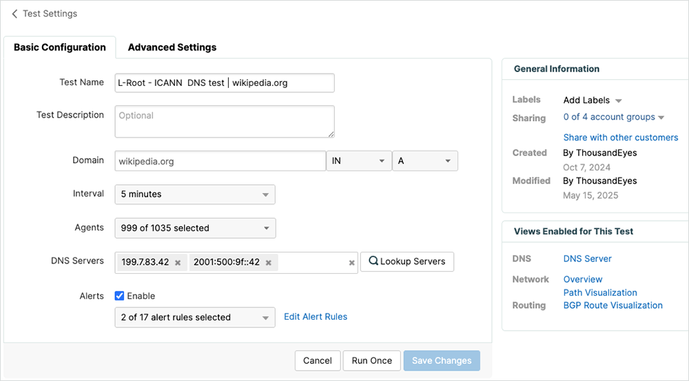 Monitoring Root DNS Prefixes With Cisco ThousandEyes