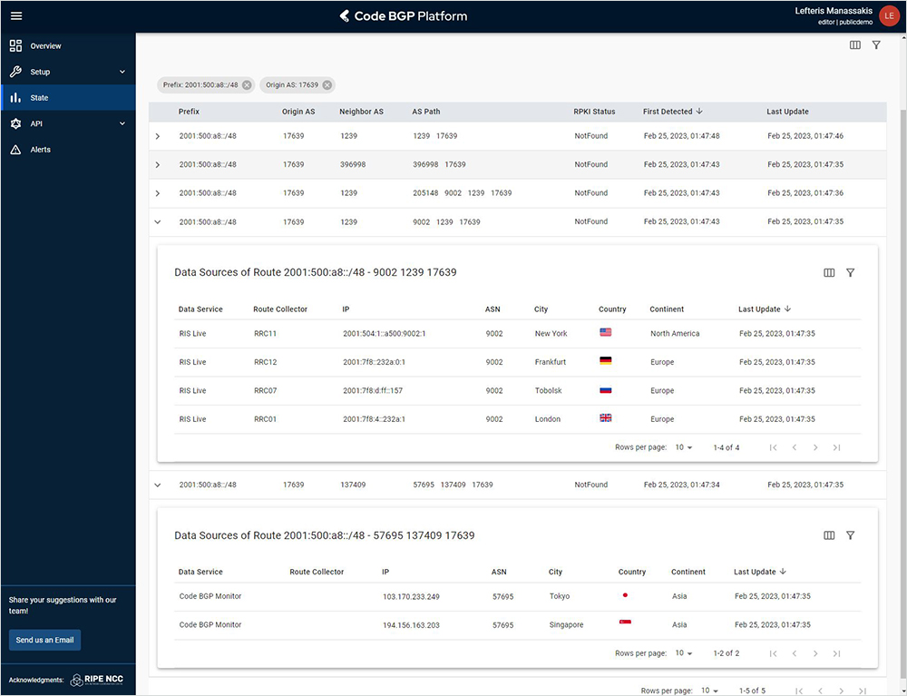 Following the acquisition and integration of Code BGP by Cisco ThousandEyes in August 2023, our teams have collaborated to enhance the ThousandEyes platform's BGP monitoring capabilities. This integration has enabled significant technical advancements, including the deployment of ThousandEyes BGP monitors in production and the transition of our BGP data pipeline to real-time.