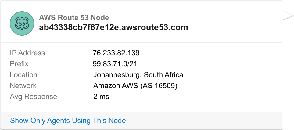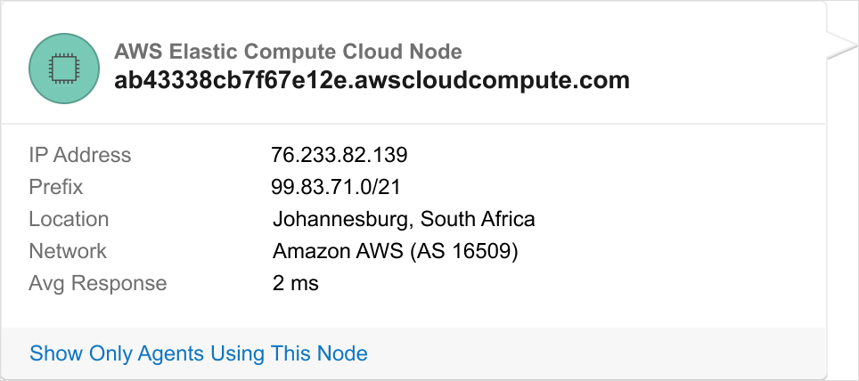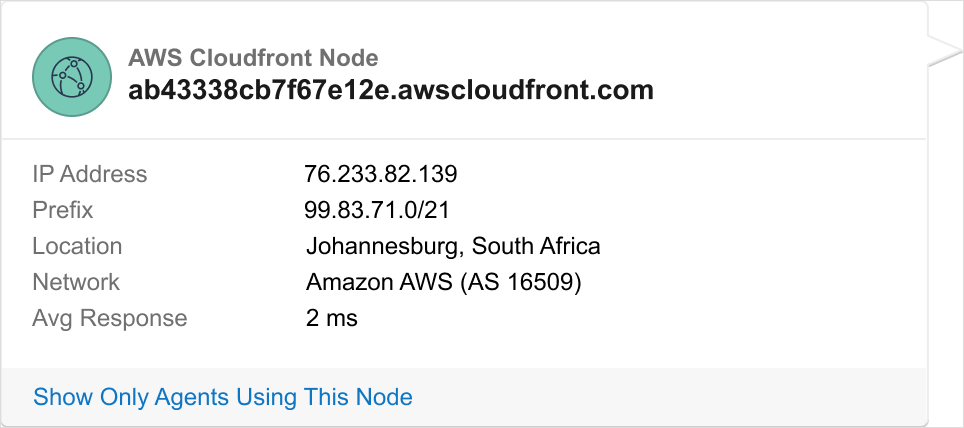 In addition to identifying which AWS services are being used, ThousandEyes will now also show the AWS region that is being traversed to help you understand geographic routing and the locations an application is being served from.