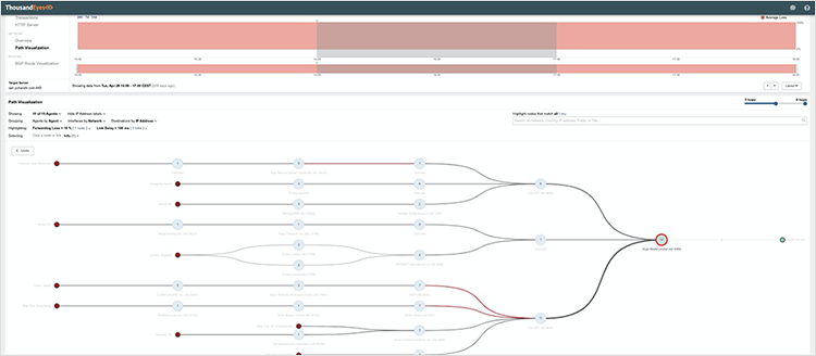 There is only one answer to support all these changes from a network strategy standpoint: understand that the Internet is the new corporate network. As users are working from home, employees are relying on their local Internet Service Providers and consumer-grade networks. Over the past year, our deep reliance on the Internet and its ecosystem of third-party providers highlighted just how fragile user experience can be when one or more of these services experience a disruption. The following screenshot shows one outage that a local ISP experienced in 2020, as seen from the ThousandEyes platform.