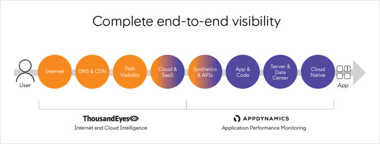 To deliver an optimized digital experience, we are learning that we need to look outside our existing operating models. Traditionally, organizations will have network monitoring tools and a different application performance monitoring solution. But this model is no longer fit for purpose in 2021. Today, we need correlated insights from across the network and application layers that preserves context as you switch between layers. Together, AppDynamics and ThousandEyes not only fill the gaps of traditional siloed tools, but also they provide a proactive, comprehensive view into the application experience that includes app delivery, app performance and key performance indicators of your business metrics regardless of where your users are globally.