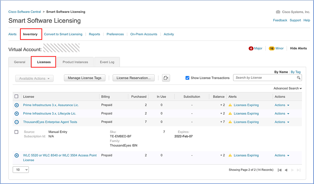 Navigate to Inventory --> Licenses