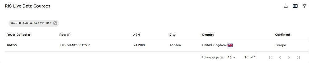 The only RIS Peer which picked up these announcements has IP 2a0c:9a40:1031::504, is connected to RRC25 (a multihop Route Collector in Amsterdam) and belongs to AS 211380. Based on RIPE IPMap that we utilize for IP geolocation, this IP is situated in London, UK.