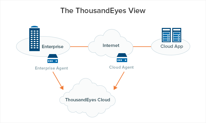 Treat the Cause, Not the Symptom. Most solutions tell you the obvious. You have a fever, so you check the thermometer and it confirms that you have a fever. But it doesn’t tell you why. What if we can build a view that does not differentiate these different network segments, but treats them all as one coherent network? What if we can make the Internet look like it’s your own managed network? You’d be able to troubleshoot problems exponentially faster, monitor for issues before their impact is felt, and make better planning decisions when changing your enterprise architecture or when building new cloud applications. This is the premise of ThousandEyes – to radically simplify troubleshooting and performance management for modern networks.