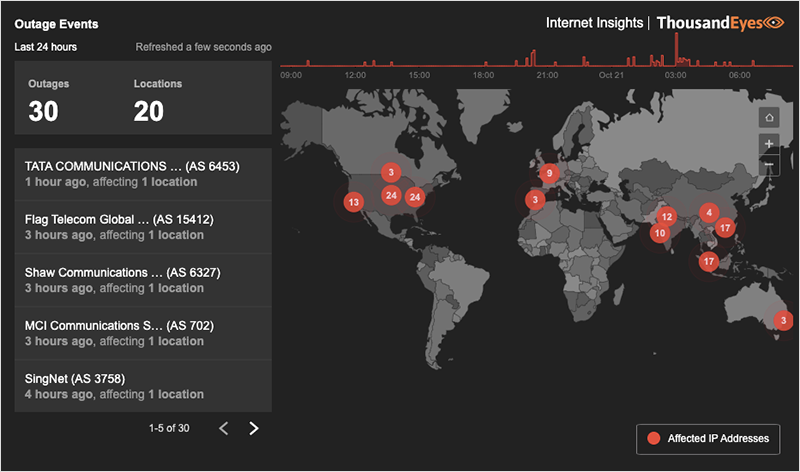 ThousandEyes Global Internet Outages Map