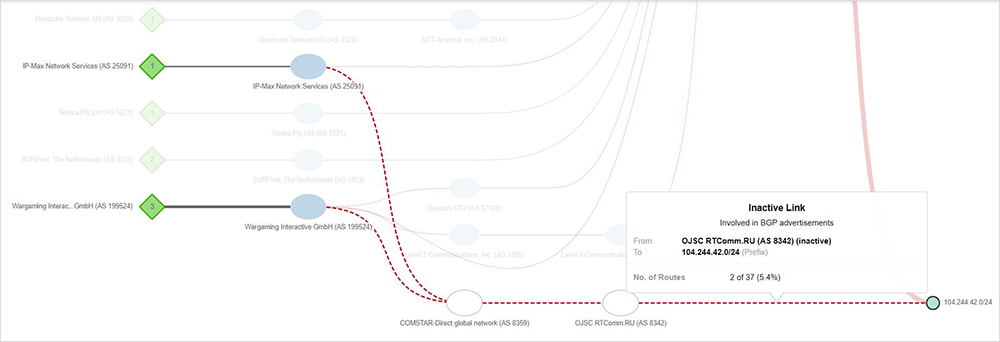 For about 45 minutes on March 28, 2022, beginning at approximately 12:07 UTC, Twitter was rendered unreachable for some users when JSC RTComm.RU (AS 8342), a Russian Internet and satellite communications provider, announced one of Twitter’s prefixes (104.244.42.0/24) and subsequently blackholed traffic destined to the social media service.