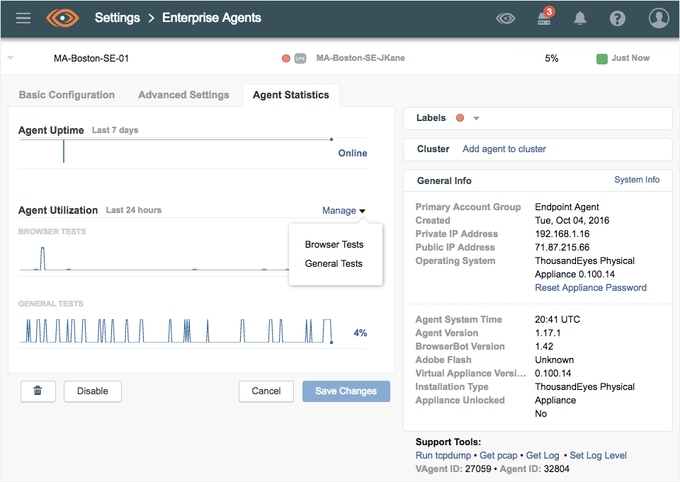 High utilization of Enterprise Agents and test management have been regular topics in our support cases. We’ve made a few enhancements based on user feedback to manage enterprise agent utilization and cross-account group tests more efficiently. Previously, we reported utilization of the cluster members, rather than of the cluster itself. We've now switched: utilization of clusters is now reported under a new Cluster Statistics tab, and the individual Agents no longer display the Agent Statistics tab, if they are part of a cluster.