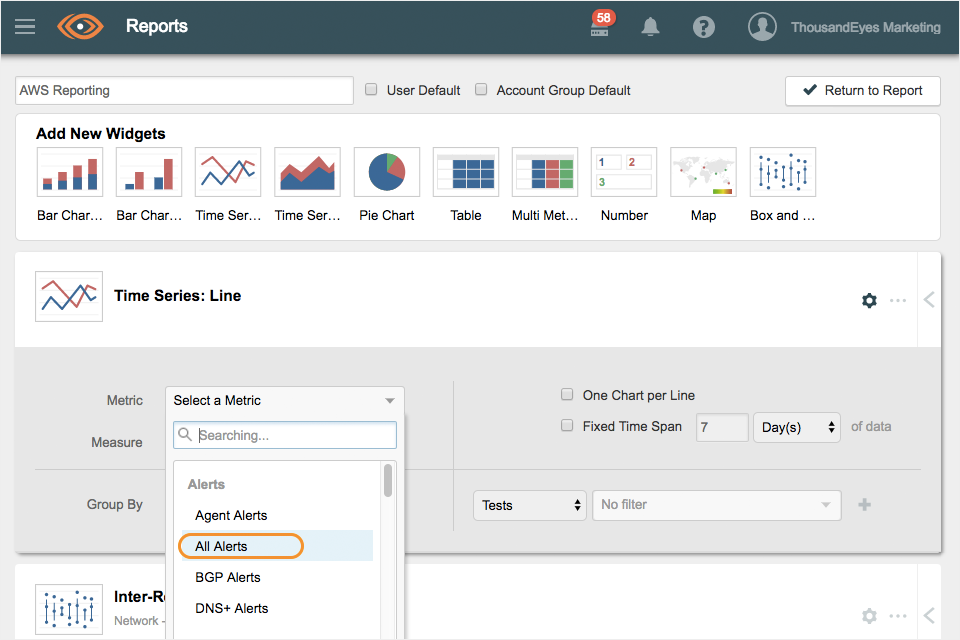 We've added a new metric in the Alerts category, called "All Alerts", that includes Agent, BGP and DNS+ alerts. It provides the ability to view all alerts and SLA data in a single dashboard across all alert types.
