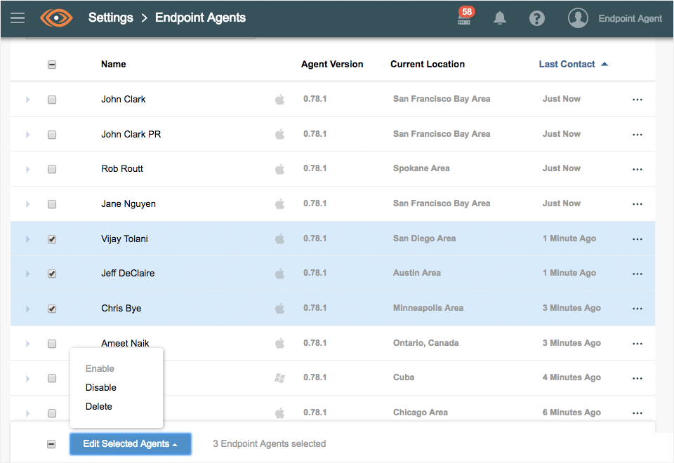 We have been working on improving the user experience for large scale Endpoint Agent deployments. In Q3, we introduced bulk editing of multiple Endpoint Agent’ settings. You can now enable, disable and delete multiple Endpoint Agents at the same time. Keep an eye out for more bulk actions features for Endpoint Agents in the coming weeks.