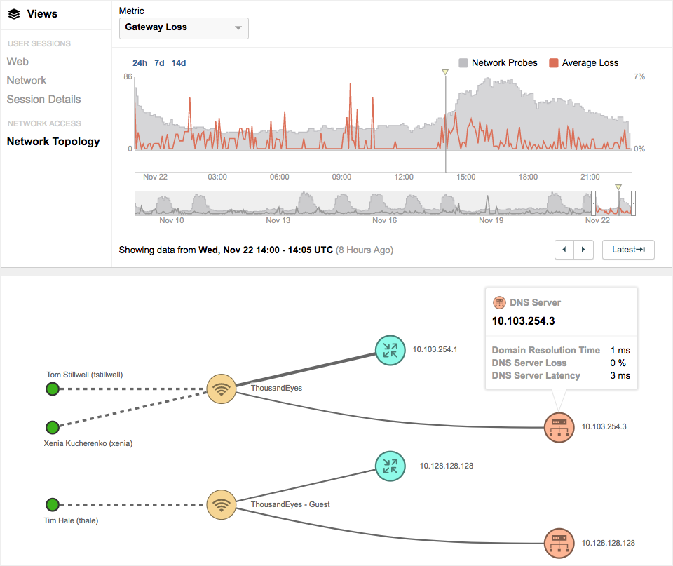 DNS resolution and performance is a critical component that can affect application performance. We have now added DNS server metrics to Endpoint Data to provide visibility into your DNS server performance. You can get insights into DNS server loss, latency and domain resolution time from the Network Topology view within Endpoint data.