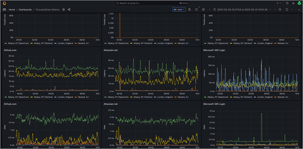 Doch die Vorteile von ThousandEyes für OTel gehen über die Kombination mehrerer Tools hinaus. ITOps-Teams können die Integrationen auch nutzen, um funktionsübergreifende und gemeinsame Untersuchungen zu ermöglichen und mehrere Teams für eine zentrale Datenanalyse und -visualisierung zusammenzubringen.