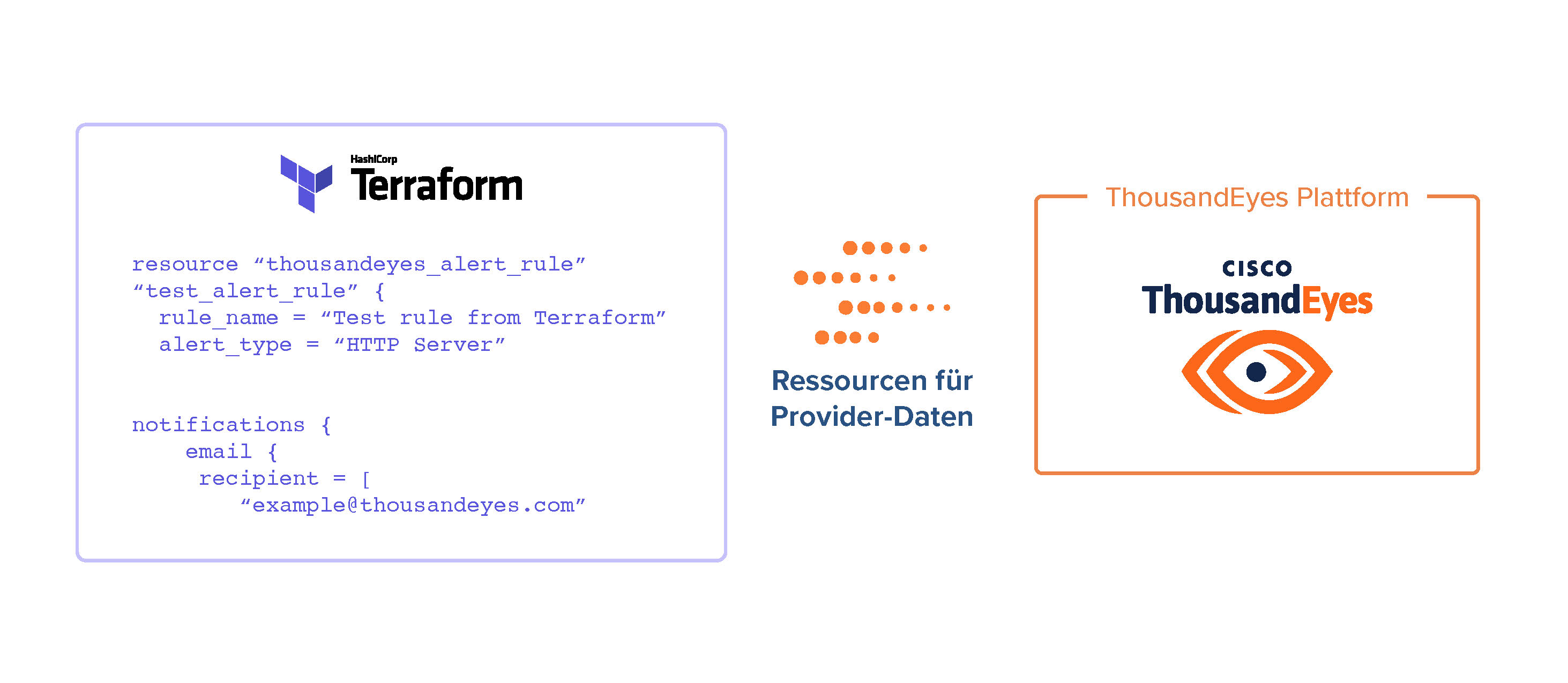 Teams responsible for operating application cloud infrastructures now have the ability to manage ThousandEyes tests, create alerts, and automate the rollout of critical performance monitoring as part of their deployment pipeline using Terraform.