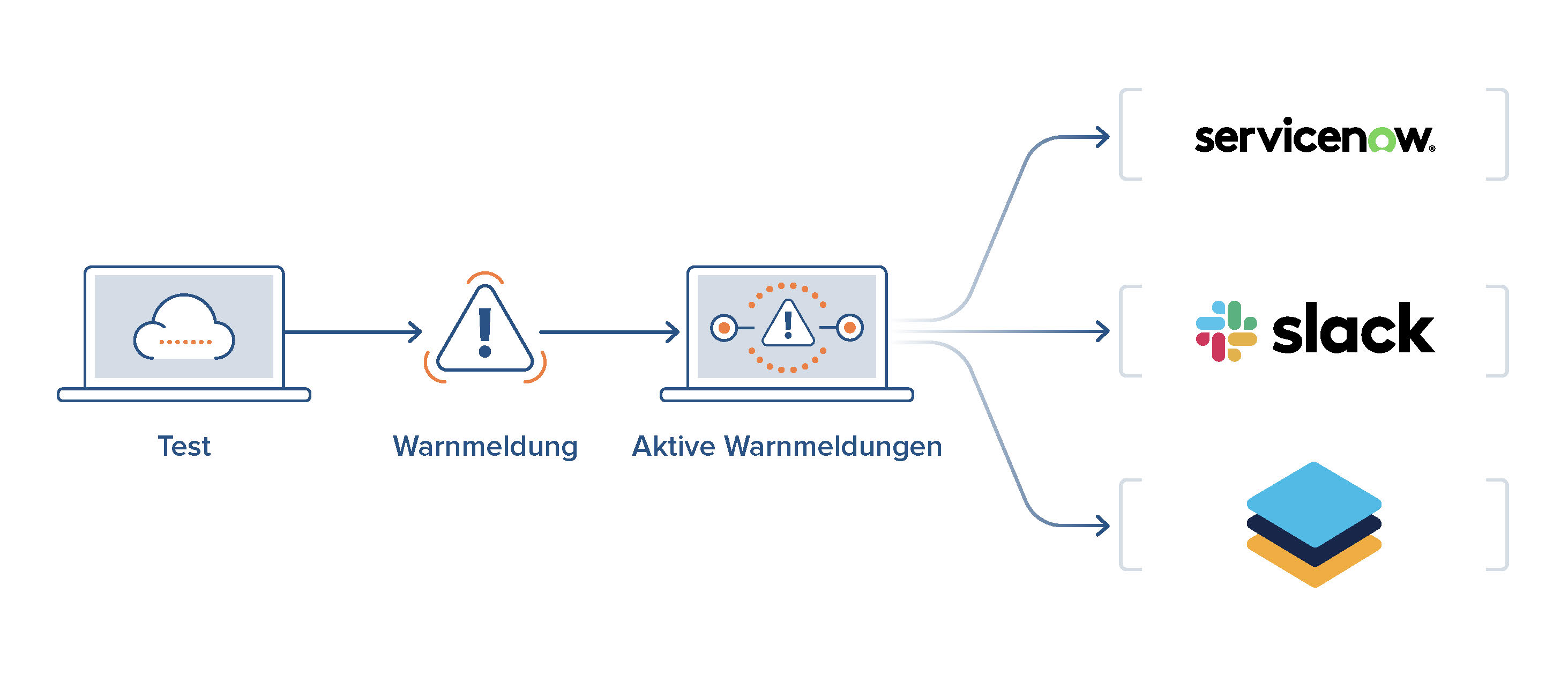Diagram showing a path from Test to Alert, Active Alerts, and then third parties