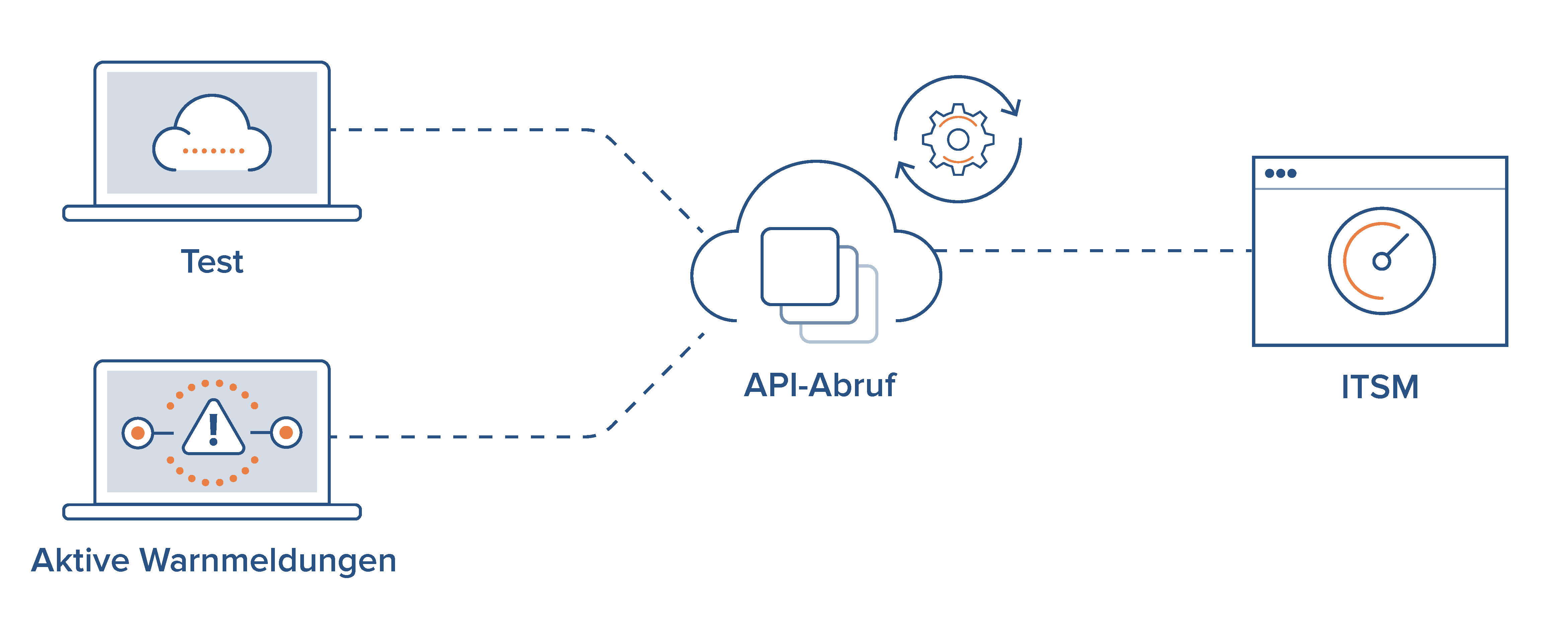Diagram of Test and Active Alerts routing through API Polling to ITSM