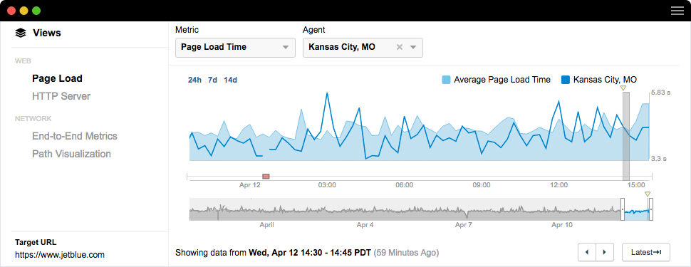 Verstehen Sie auf einen Blick, wie jedes Netzwerk sich auf Ihre App-Performance, Geschäftstransaktionen und die End User Experience auswirkt. Optimieren Sie die Performance von Websites dank Transparenz, die Sie durch Wasserfalldiagramme zum Seitenaufbau, End-to-End-Performance, Pfadverfolgung und Internet-Routing erhalten.