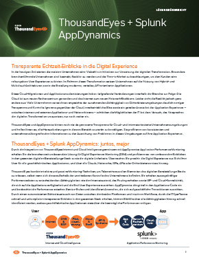 ThousandEyes kombiniert aktive und passive Monitoring-Techniken, um Telemetrie aus allen Elementen des digitalen Bereitstellungs-Stacks zu erfassen, selbst wenn sich diese außerhalb der unmittelbaren Kontrolle des Unternehmens befinden. Sie erhalten aussagekräftige Performancedaten zu entscheidenden Abhängigkeiten wie den Internetzustand, das Routingverhalten sowie ISP- und Cloud-Konnektivität, die sich auf die Applikationsverfügbarkeit und die End User Experience auswirken. AppDynamics dringt tief in den Applikations-Code ein und beobachtet die Performance zwischen Service-Stufen und identifiziert Anomalien, die sich auf geschäftliche Transaktionen auswirken. Durch einen automatisierten Echtzeitaustausch von Daten zwischen den beiden Plattformen und intuitiven Workflows, durch die ITOps-Teams schnell und unkompliziert transparente Einblicke in den gesamten Stack erhalten, können Störfälle über alle Abhängigkeiten hinweg schnell identifiziert werden, sodass geschäftskritische Applikationen stets über die bestmögliche Performance verfügen.