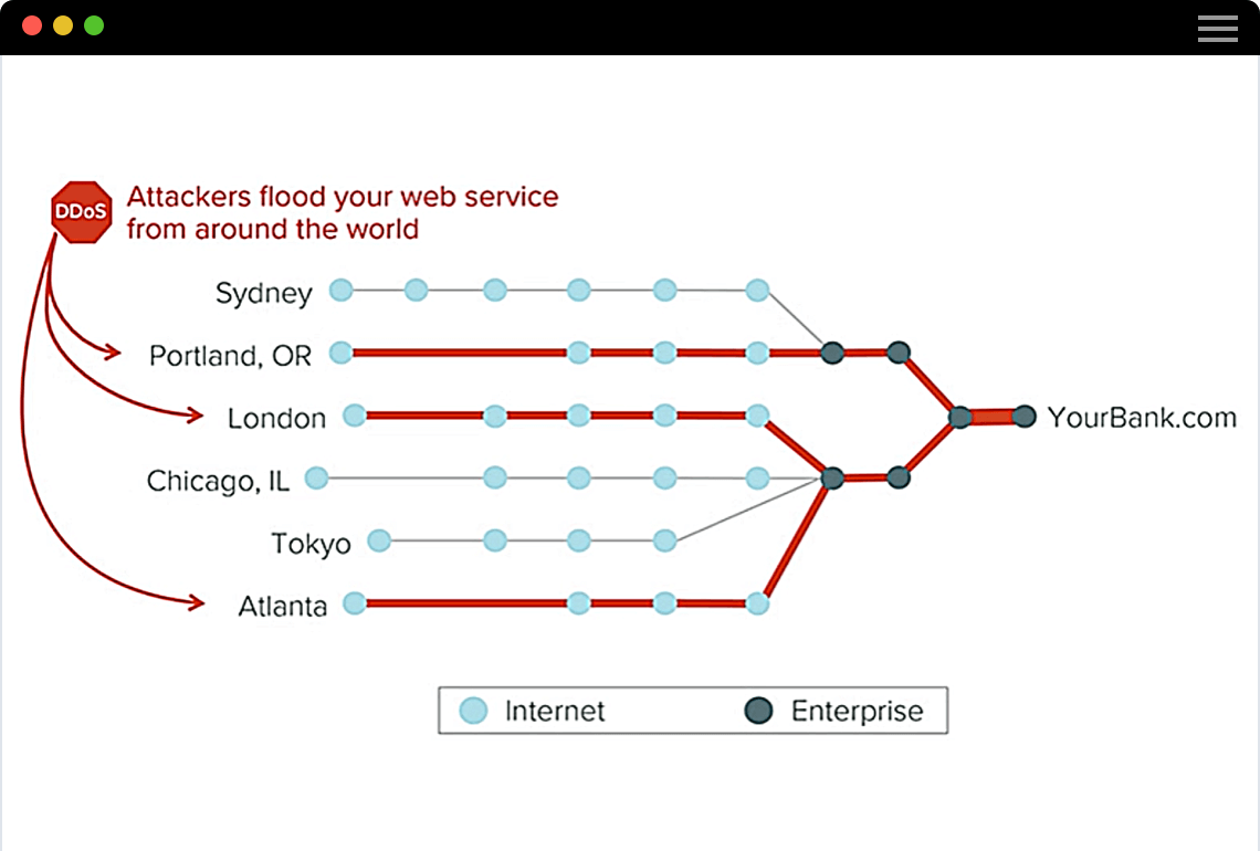 DDoS-Angriffe können geschäftskritische Applikationen stark beeinträchtigen und den Geschäftsbetrieb lahmlegen − das hat negative Auswirkungen auf Ihren Umsatz und Ihre Marke. Sie belasten globale Unternehmensnetzwerke und ihre übergeordneten ISP-Netzwerke stark. Cloud-basierte Services zur Abwehr von DDoS-Angriffen (Distributed Denial of Service) oder eine On-Premises-Abwehrstrategie sind zwei Methoden, die von Unternehmen angewendet werden, um um DDoS-Angriffe abzuwehren.
