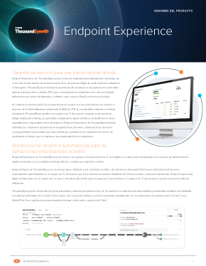 La empresa moderna está evolucionando. Lo que antes estaba totalmente bajo el control corporativo ahora se extiende más allá del perímetro corporativo. Las aplicaciones que antes se alojaban en las instalaciones ahora están basadas en SaaS o en la nube. Su personal está más distribuido que nunca y depende de una combinación muy compleja de servicios de Internet, móviles y en la nube para acceder a aplicaciones esenciales. Garantizar la productividad de los empleados en todo su vasto ecosistema digital requiere un nuevo paradigma que incluya visibilidad de extremo a extremo desde cada equipo del usuario hasta cualquier aplicación web a través de cualquier red.