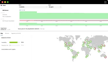 Los tests de DNS monitorizan la disponibilidad y el tiempo de respuesta de los servidores DNS, así como la integridad de las respuestas de DNS.