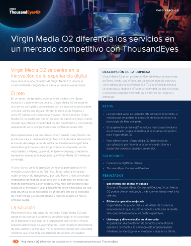 "A medida que nos embarcamos en el viaje hacia una garantía total de la experiencia digital del abonado, estamos muy emocionados por cómo los datos de ThousandEyes mejoran las operaciones de Virgin Media O2", indica Lister.