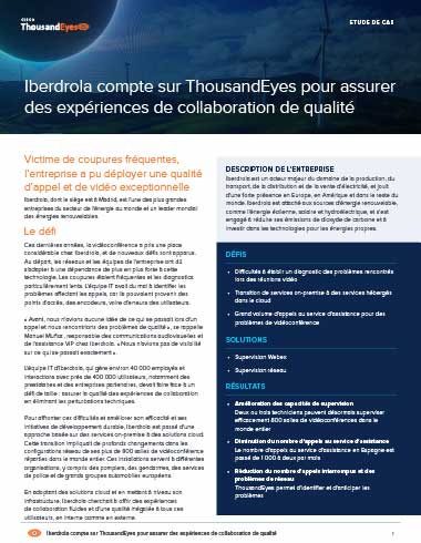 ThousandEyes assure les expériences digitales des utilisateurs d'Iberdrola pour qu'ils puissent utiliser leurs équipements de vidéoconférence en toute confiance et profiter d'interactions productives avec leurs collègues et leurs clients.