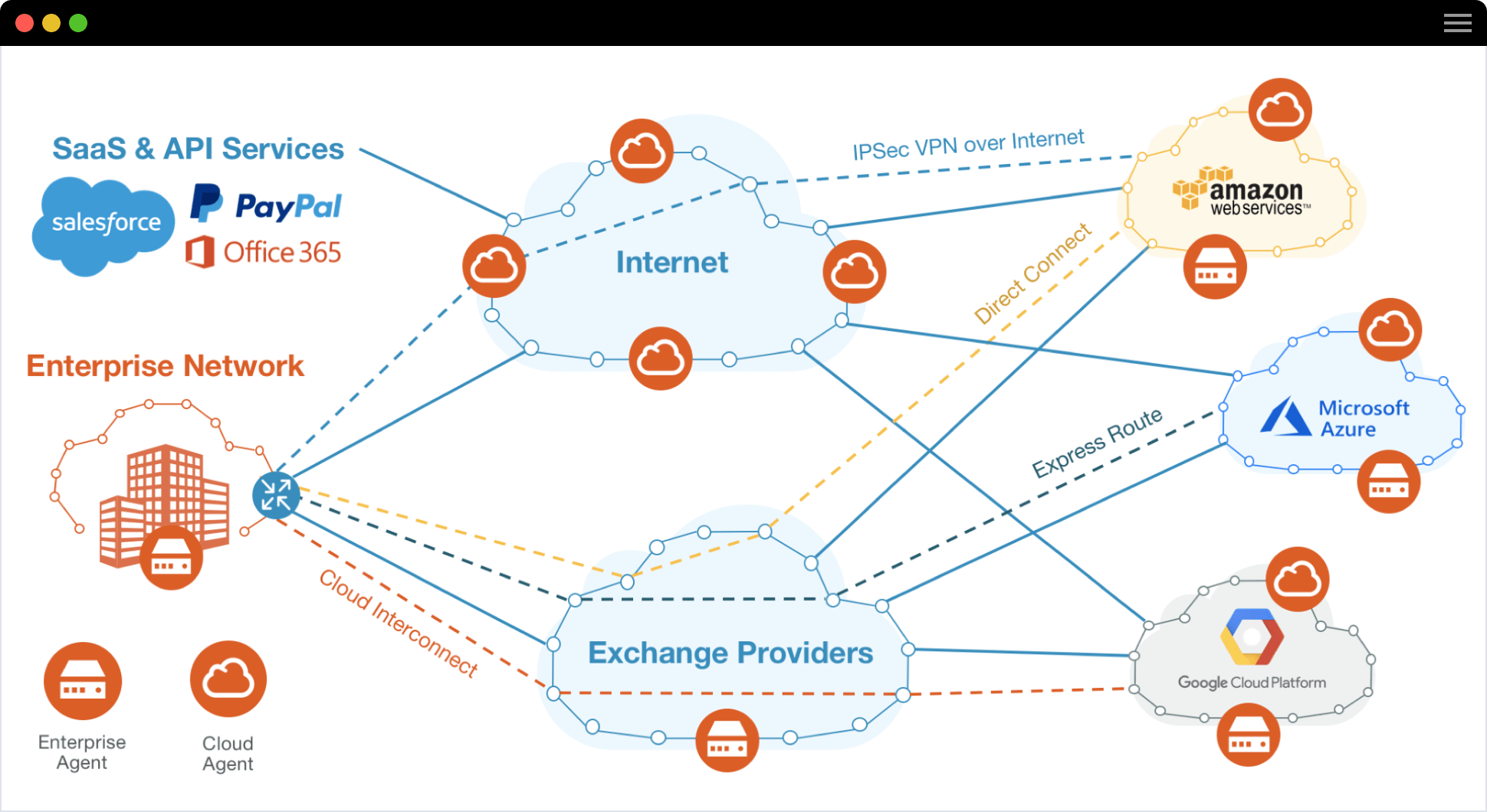 La migration d'applications et le déploiement de nouveaux services dans les clouds IaaS (infrastructure en tant que service) créent de nouvelles dépendances au niveau des services et des réseaux, sur lesquelles reposent la mise à disposition des applications et l'expérience utilisateur. ThousandEyes fournit une visibilité sur les performances de la couche applicative et réseau, et met à votre disposition des informations exploitables sur la manière dont les problèmes de votre réseau, sur Internet et au sein des fournisseurs cloud impactent votre activité. Les agents ThousandEyes sont déployés dans les instances IaaS et les data centers privés pour exécuter des tests de supervision active qui collectent les données sur le protocole HTTP, le chargement des pages, les transactions, les chemins réseau et les métriques. La plateforme ThousandEyes combine ces données avec l'intelligence collective provenant d'autres services axés sur Internet pour produire une visualisation enrichie qui vous permet de comprendre l'engorgement des performances, les problèmes de fournisseurs et les répercussions sur le réseau.