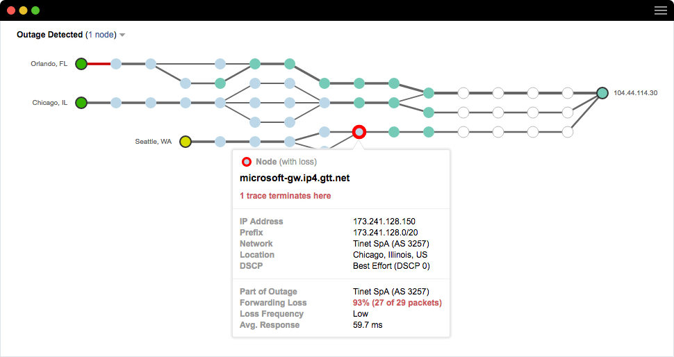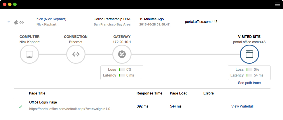 Visualisez les performances de l'ensemble de vos bureaux et utilisateurs pour localiser la source des problèmes de perte de paquet, de latence ou de connexion avec n'importe quel réseau afin de résoudre plus rapidement les problèmes et d'améliorer la bande passante.