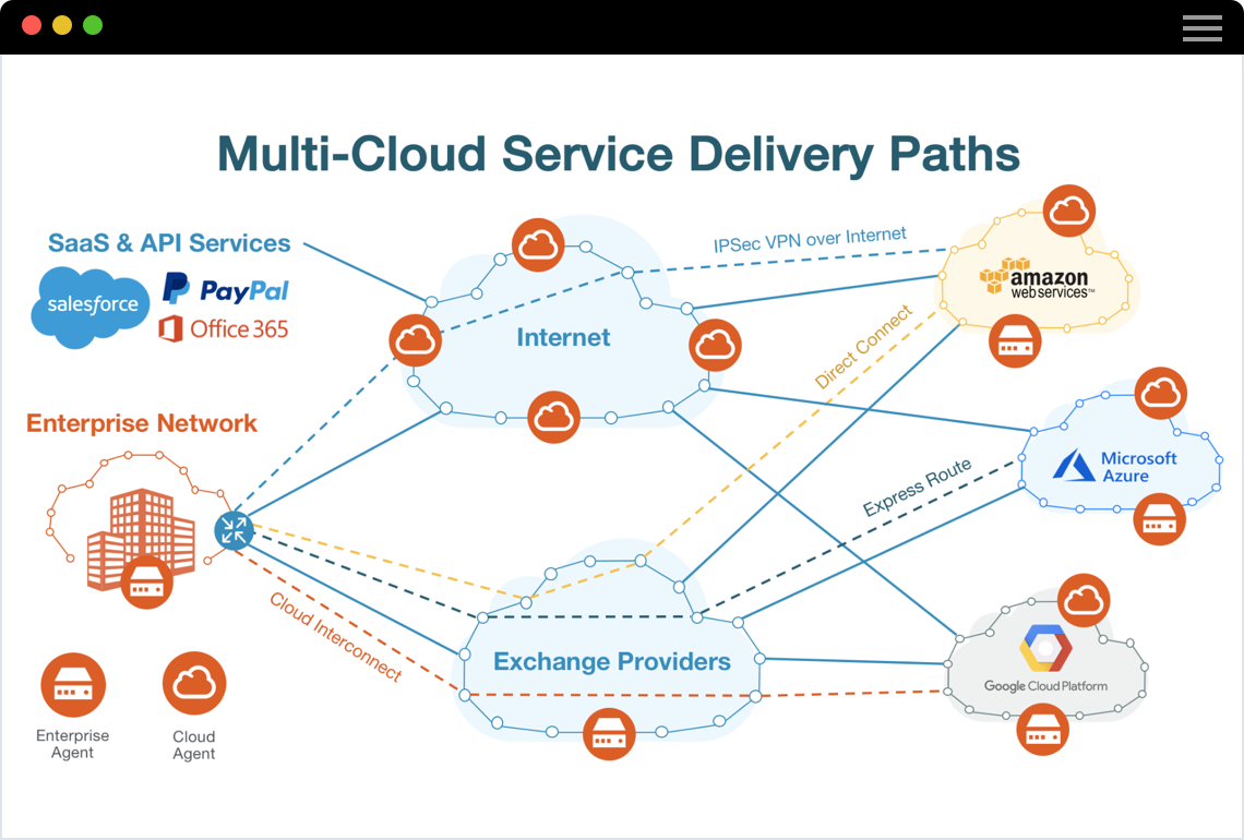 Les entreprises adoptent des stratégies multicloud pour ne plus dépendre de fournisseurs spécifiques et accéder aux services de pointe de plateformes cloud comme AWS, Google Cloud, Microsoft Azure, IBM Cloud et Alibaba Cloud. La prolifération des architectures d'applications modulables est à l'origine d'une matrice complexe de communication entre les services sur les infrastructures et les réseaux non détenus ou contrôlés par les entreprises. Une grande partie de cette communication transite sur Internet, qui est devenu un mode de transport stratégique pour les entreprises.