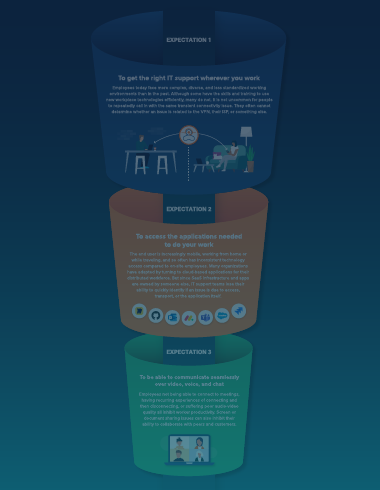 現代の企業は進化しています。かつては組織内での管理下にあったものが、今や境界を超えて組織外に広がっています。 従来はオンプレミスでホストされていたアプリケーションが、現在では SaaS ベースまたはクラウドベースになっているからです。従業員はこれまで以上に分散化されており、インターネット、モバイル、クラウドサービスの複雑な組み合わせに依存して、重要なアプリケーションにアクセスしています。 広大なデジタルエコシステム全体で従業員の生産性を確保するには、あらゆるユーザーエンドポイントや Web アプリケーションを、あらゆるネットワークを経由してエンドツーエンドで可視化できる新たなパラダイムが必要です。