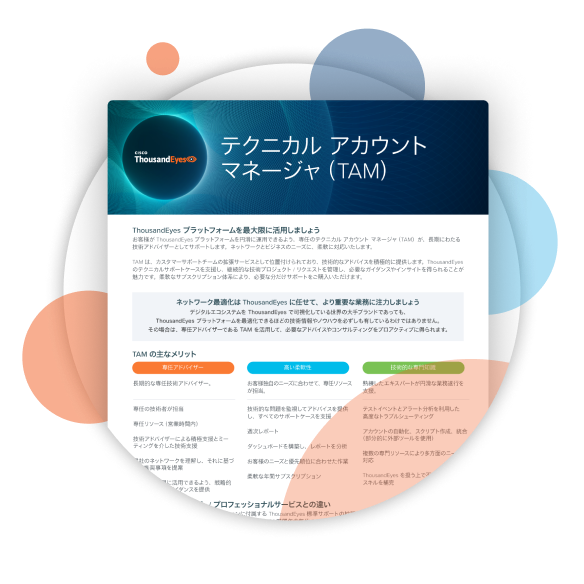 ThousandEyes’ Technical Account Managers (TAMs) provide proactive, dedicated support and technical guidance.