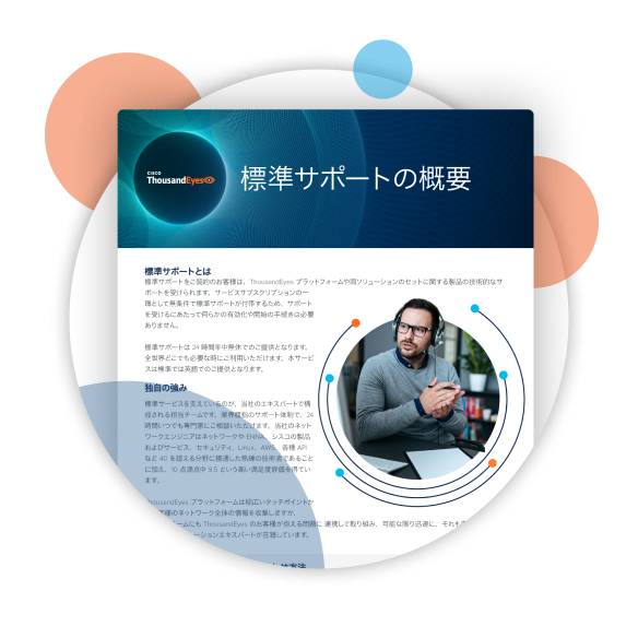 ThousandEyes is committed to supporting you at every stage. We offer a range of services to help you fully leverage our platform and maintain seamless operations. With your ThousandEyes platform subscription, you receive Standard Support, which includes round-the-clock customer assistance, available 24/7/365. For an extra level of service, our Technical Account Managers (TAMs) provide dedicated support during business hours to ensure smooth operations. Complementing this, our Professional Services team is on hand for custom project implementations and integrations, maximizing your return on investment, and helping to ensure successful product adoption—accelerating time to value.
