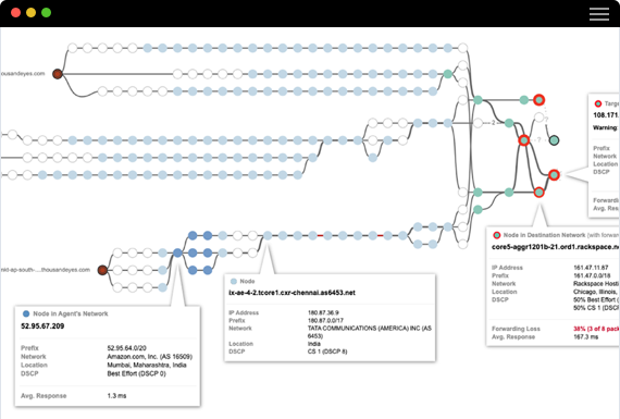 あらゆる AWS リージョンの Cloud Agents から収集された情報によってクラウドネットワークやアプリケーションのパフォーマンスがただちに可視化。クラウドサービスに的確なホスティングを選択できるようになります。