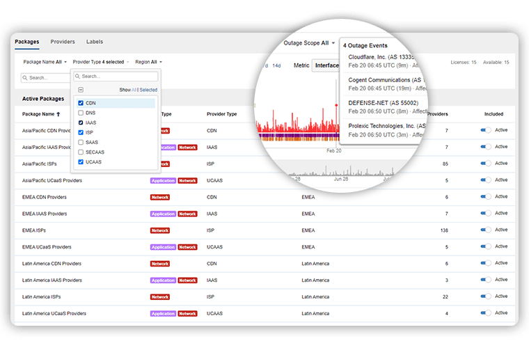 ISP, 퍼블릭 클라우드, 엣지 서비스 네트워크에 걸쳐 실시간으로 중단을 확인하세요.
