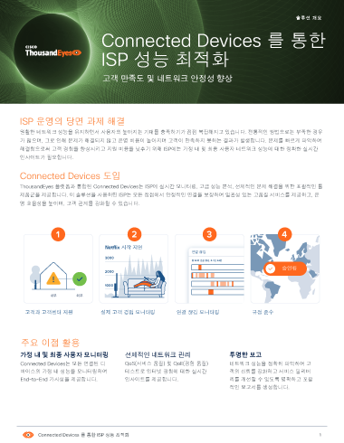 Connected Devices, integrated with the ThousandEyes platform, provides ISPs with an advanced suite of tools for real-time monitoring, advanced performance analytics, and proactive issue resolution. This solution helps enable ISPs to deliver consistent, high-quality service; optimize operational efficiency; and build stronger customer relationships by providing reliable connectivity across all touchpoints.