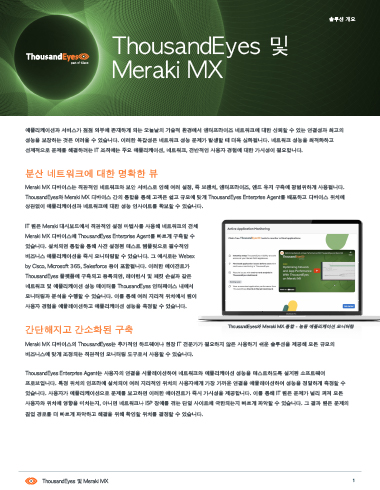 Meraki SD-WAN의 ThousandEyes 밴티지 포인트가 제공하는 독보적인 대규모 인터넷 및 SaaS 가시성을 얻을 수 있습니다.