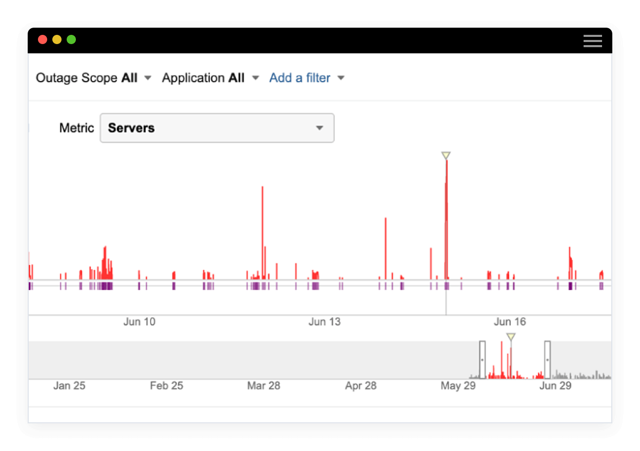 - Visualize the scale and geographic scope of application outages, enabling IT teams to understand whether an issue is isolated to a localized service outage or part of a wide-scale issue