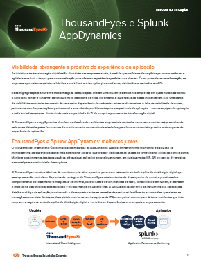 O ThousandEyes combina técnicas de monitoramento ativas e passivas para coletar telemetria de todos os elementos da pilha de distribuição digital, até mesmo de elementos que as empresas não controlam, coletando dados práticos de desempenho sobre dependências importantes, como integridade da Internet e comportamento de roteamento, além de ISP e nuvem conectividade, que afetam a disponibilidade de aplicações e a experiência de usuário final. O AppDynamics detalha o código da aplicação, monitorando o desempenho entre as camadas de serviço e identificando as anomalias que afetam as transações comerciais. Por meio da troca automatizada de dados em tempo real entre as duas plataformas e de fluxos de trabalho intuitivos que reduzem o tempo e o esforço necessários para obter visibilidade de pilha completa, as equipes de ITOps podem detectar mais rapidamente os incidentes que causam interrupções nos negócios em todas as dependências, para garantir o desempenho coerente das aplicações essenciais em níveis elevados.